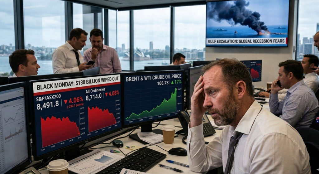 הבורסה האוסטרלית חוותה ביום המסחר האחרון טלטלה עזה, כאשר כמעט 130 מיליארד דולר משווי השוק נמחקו בתוך שעות ספורות כתוצאה מגל מכירות גלובלי. מדובר באובדן הון משמעותי השקול למחיקה של כמעט חמישה אחוזים מכלל הנכסים המנייתיים במדד המוביל, אירוע ששלח גלי הדף לכל עבר. המדד המרכזי, S&P/ASX200, צלל ב-359.1 נקודות, ירידה של 4.06% שמיקמה אותו ברמה של 8,491.8 נקודות, בעוד המדד הרחב יותר, All Ordinaries, איבד 4.08% מערכו ונסגר על 8,714.0 נקודות. עבור המשקיעים בסידני, מדובר בנקודת השפל הנמוכה ביותר מאז סוף חודש נובמבר, המזכירה את ימי המתיחות של אפריל 2025, אז מלחמות הסחר של דונלד טראמפ הובילו לצלילה חדה של 4.2%. הלך הרוח במסדרונות המסחר מתואר כפסימיות מפוכחת, שכן השוק מקשיב היטב לדי הפיצוצים במזרח התיכון ומתמחר מחדש את הסיכונים הגיאופוליטיים שהיו רדומים במשך תקופה ארוכה.