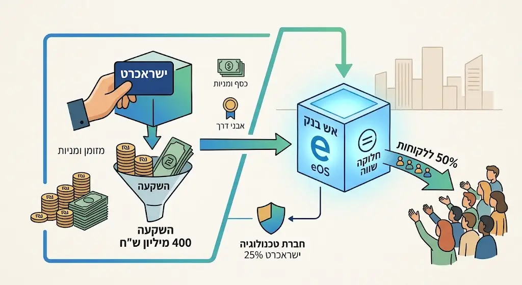 שלב א' (מיידי): ישראכרט תזרים 250 מיליון שקל לקופת הבנק תמורת הקצאת מניות.