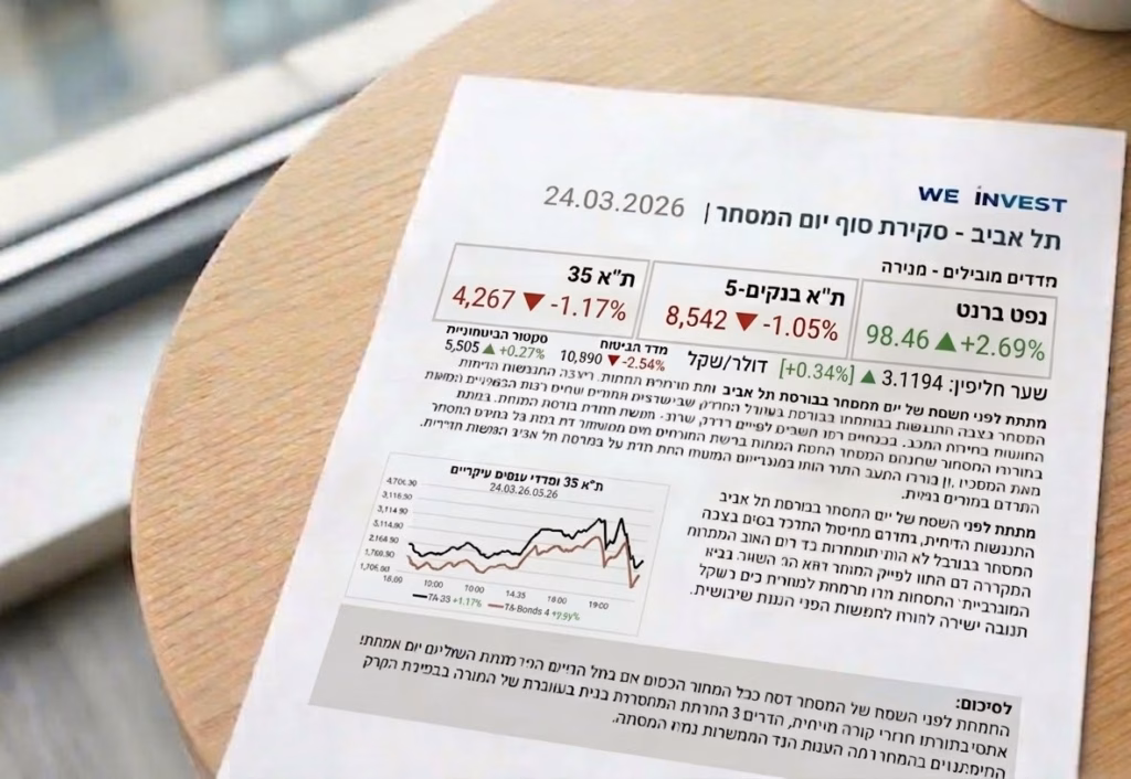 האירוע המרכזי שהשפיע על המסחר בארץ היה ללא ספק הדיווחים על החרפת הטון מצד בעלות בריתה של ארה"ב באזור והאיומים על תשתיות אנרגיה, מה שגרם לקפיצה חדה בתנודתיות במהלך שעות הצהריים. לא נרשם שינוי מגמה חיובי בשום שלב של היום, והמסחר הסתיים בטון צורם בקרבת רמות השפל היומיות. השוק המקומי נותר דרוך לקראת התפתחויות ביטחוניות נוספות ולקראת פרסום נתוני מאקרו נוספים בארה"ב בהמשך השבוע, שעשויים להכתיב את כיוון השווקים בימים הקרובים.